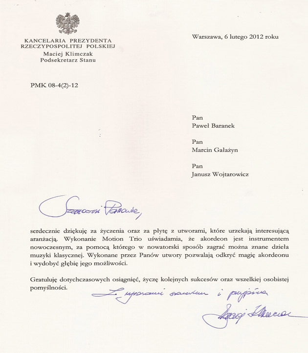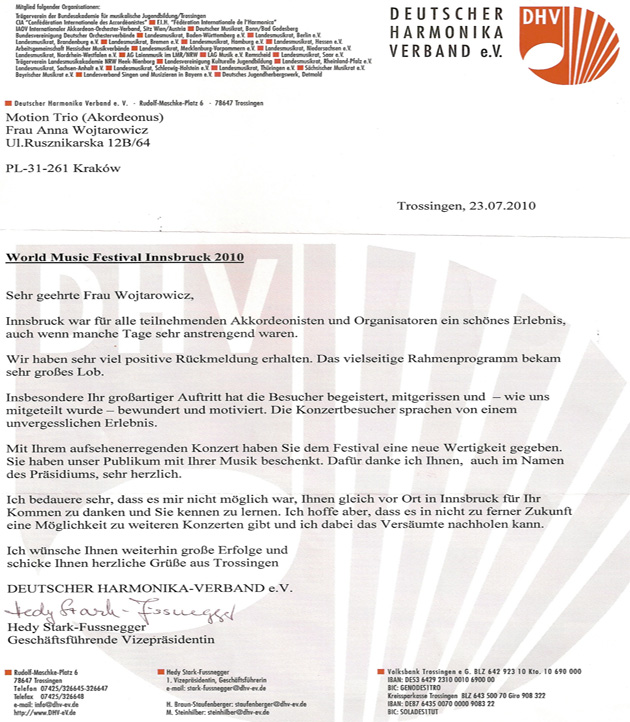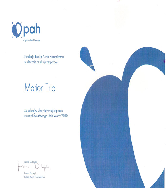 AKORDEONUS uczestniczyl w organizacji ponad 600 koncertow zespołu Motion Trio w 42 krajach świata,